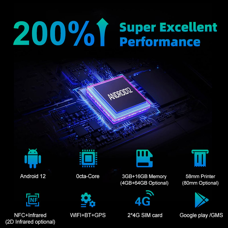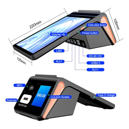The device is powered by a high-capacity 6400mAh pure cobalt lithium battery, delivering extended usage for full-day operations. Its portable design makes it ideal for mobile businesses, table-side ordering, and on-the-go transactions.